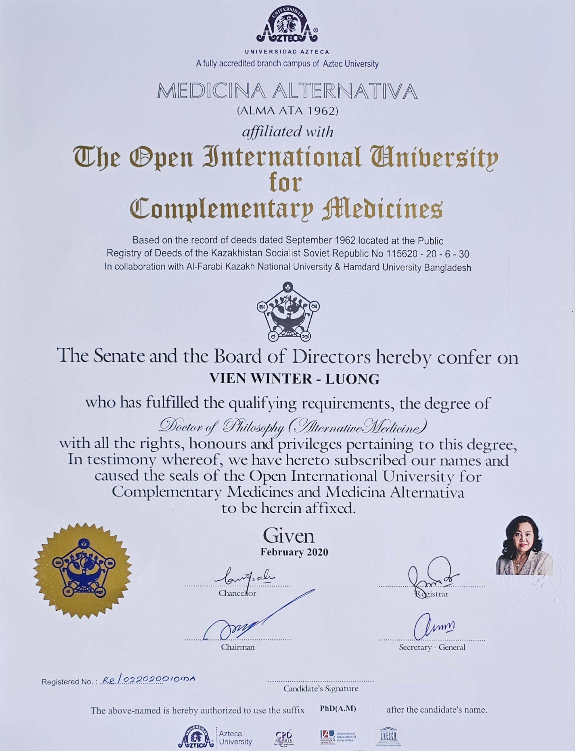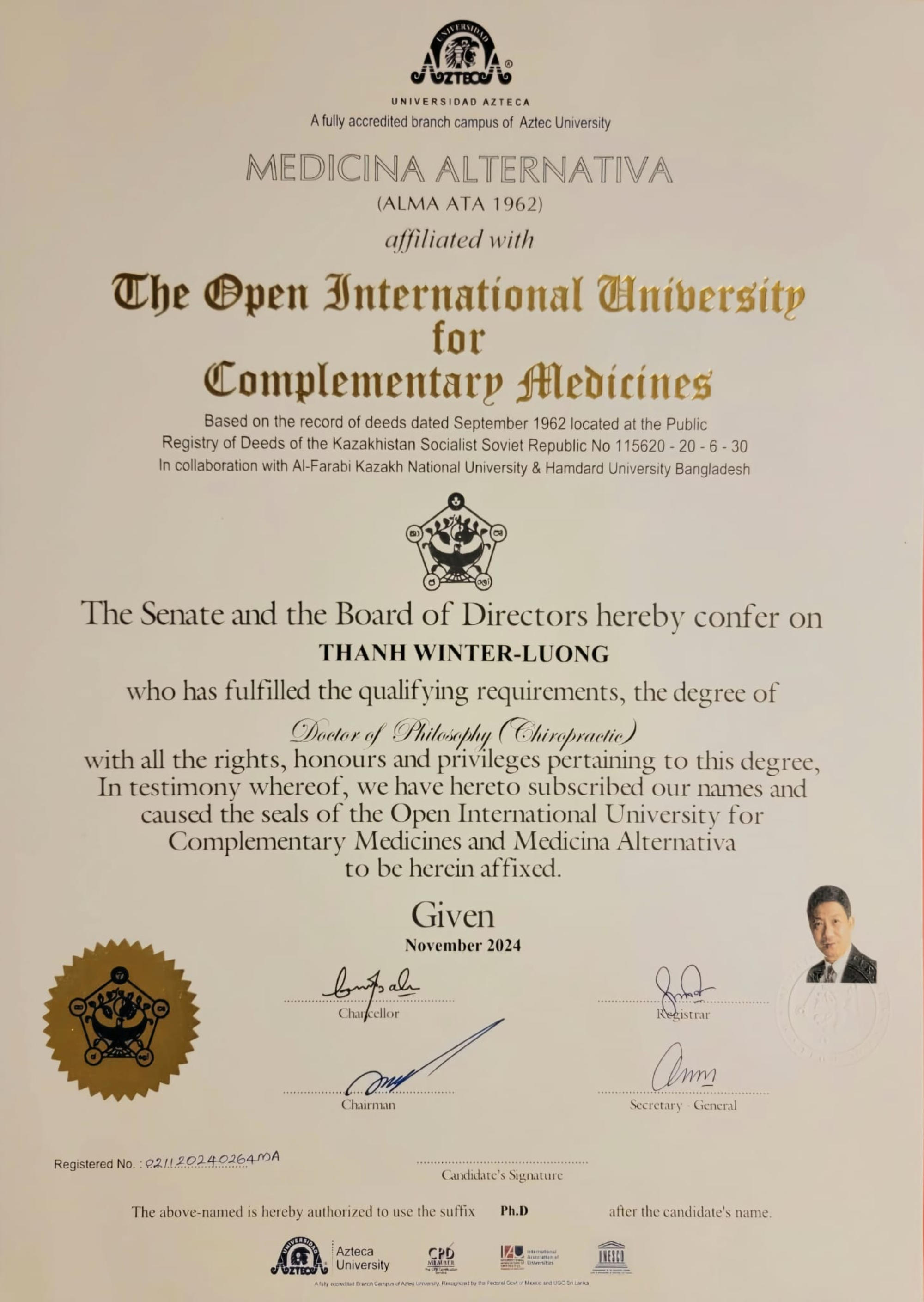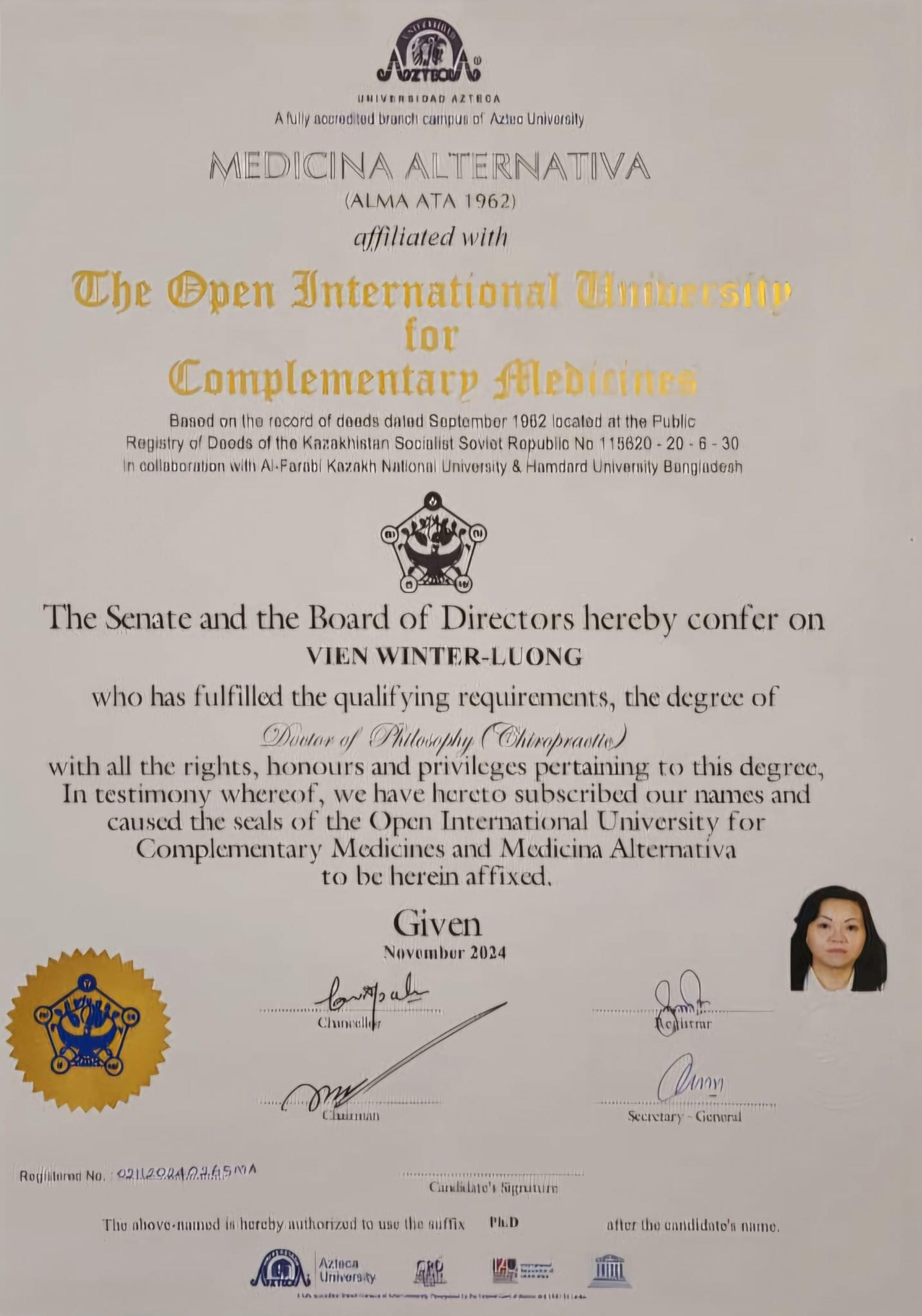 Vien Winter-Luong Ph.D (A.M); Ph.D (Chiropractic)